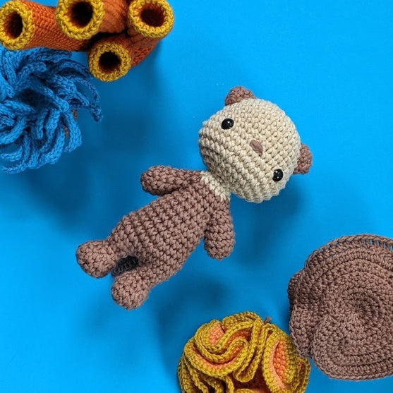 Questo modello amigurumi si ispira alla lontra marina, un mammifero marino originario delle coste dell'Oceano Pacifico. Le gambe, le braccia e il corpo sono progettati per essere lavorati insieme in un unico pezzo in modo che non sia necessaria alcuna cucitura. Le foto passo passo ti guideranno attraverso il modello.
