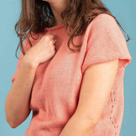 Ada è un bellissimo top estivo lavorato a maglia dal basso verso l’alto con aumenti che creano una forma ad A rovesciata. Ada è realizzato con Twister Solid, un filato bello e leggero, perfetto per i capi estivi.