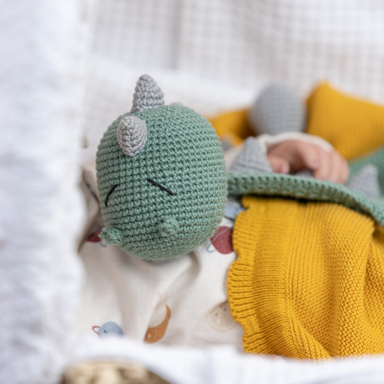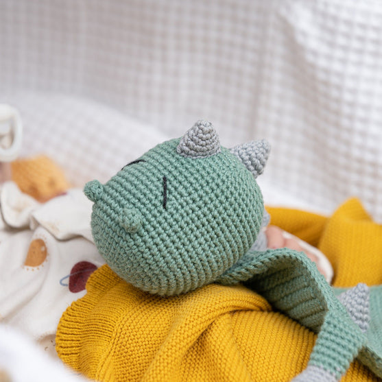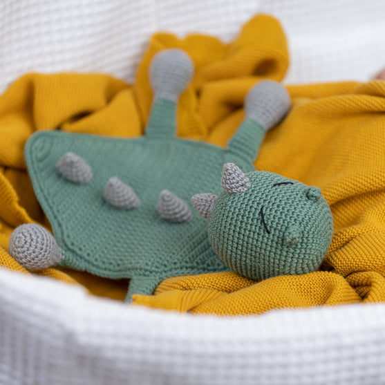 Ecco la bellissima copertina delle coccole del Dinosauro Donnie. Lui è dolce e ama coccolare i bebè, assicurandosi che facciano solo dolci sogni.