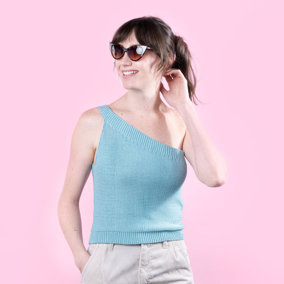 Elin è un meraviglioso top corto monospalla che rende interessante ogni abbinamento. Il taglio moderno e l’elegante lavorazione lo rendono divertente da realizzare.