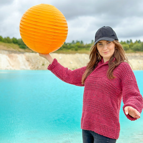 Il maglione è ampio e comodo. Si lavora con ripetizioni del motivo alternando maglia a nido d'ape e maglia rasata. Il collo è lavorato solo a nido d’ape. Lavora separatamente il dietro, il davanti e le maniche.