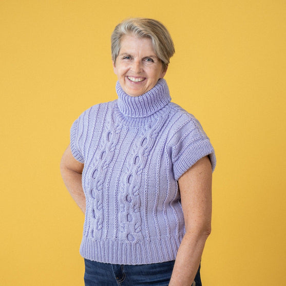 Simply Wintry è un comodo gilet lavorato dal basso verso l’alto, in tondo. Allo scalfo dividi e termina ciascun lato separatamente.