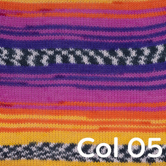 La vibrante tavolozza cromatica di ogni gomitolo di Silly Socks Flower Pop ti ricorderà immediatamente un bellissimo giardino pieno di fiori dai colori vivaci.