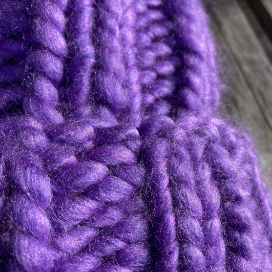 BerrettO bello, grosso, adatto ai principianti, con una piega lavorata a coste sui ferri circolari. Può essere combinato con una sciarpa Freddie.