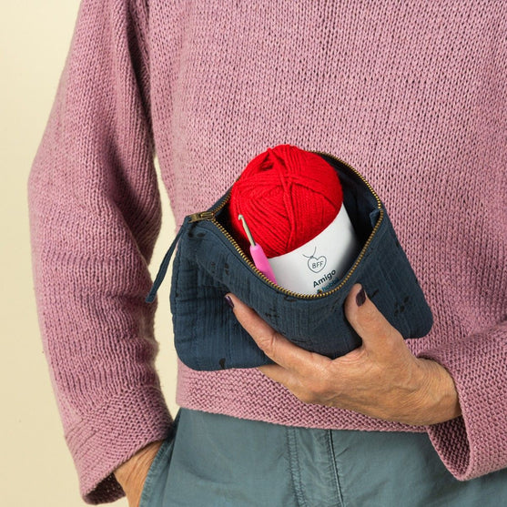 Questo raffinato organizer trapuntato è perfetto per tenere in ordine tutti gli accessori. Il contenuto è quindi tenuto in posizione dalla chiusura a cerniera. Può contenere sia accessori gomitolosi che non e sarà bellissima anche utilizzata come borsa per tenere i trucchi, ad esempio.
