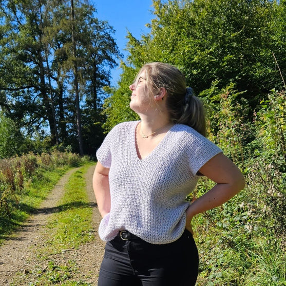 La Maglia Shiny Blossom è un progetto facile e veloce con pochissimo assemblaggio. Il tutto è lavorato da un lato all'altro in un unico pezzo e necessita di essere cucito solo sui fianchi e sulle maniche. La vestibilità è comoda e un po' oversize. Può essere indossato anche in estate e in altre stagioni. Tutti i punti utilizzati in questo modello sono adatti ai principianti.