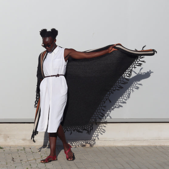 Questo scialle è un involucro, è una coperta, un sostituto della giacca, uno strato extra e qualsiasi altra cosa ti serva. Abbastanza grande per sentirsi al sicuro, abbastanza piccolo da stare in una borsa e dovrai condividere questo amico solo se lo desideri.