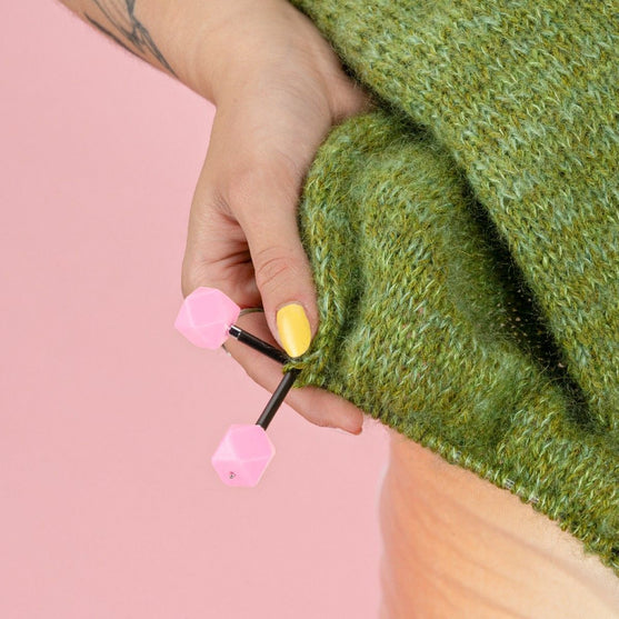 I proteggi punte per ferri sono prodotti in silicone, che aderisce bene e rimane fermo sulla punta del ferro – anche quando li utilizzi su ferri da maglia spessi, fino a 12 mm.